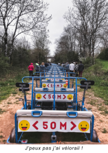 Les lieux des soirées du WAT sont toujours tenus secrets jusqu’au dernier moment. Il ne nous en faut pas plus pour élaborer entre nous les théories les plus folles et tenter de deviner notre destination finale. Pour la première soirée, après une trentaine de minutes de bus, nous sommes arrivés au départ d’une ancienne voie ferrée pour tester…le vélorail du Larzac !
