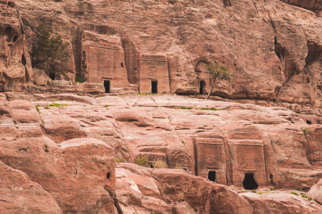 Après avoir dépassé le Théâtre, nous pouvons admirer les magnifiques Tombes Royales creusées dans le djebel Al-Khubtha. Ces sépultures impressionnantes font partie des plus belles de Pétra. Quelques marches permettent d’y accéder facilement, et c’est d’ailleurs ici que commence Al-Khubtha Trail, une randonnée magnifique permettant d’avoir une vue en hauteur sur le Trésor.